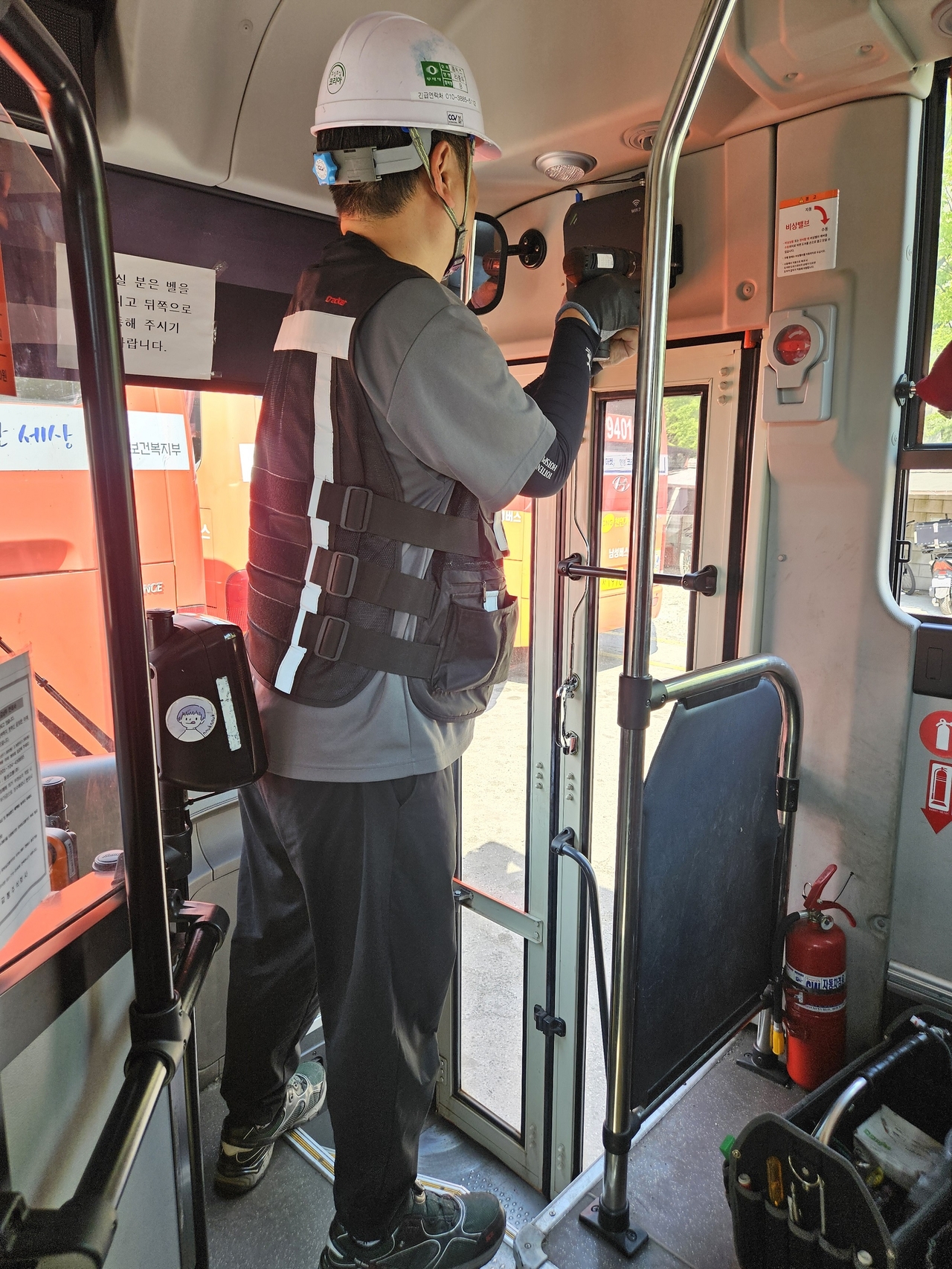 | SK텔레콤 관계자가 시내버스에 와이파이 7(WiFi-7)을 도입하는 시범 서비스를 점검하고 있다. [SK텔레콤 제공] |