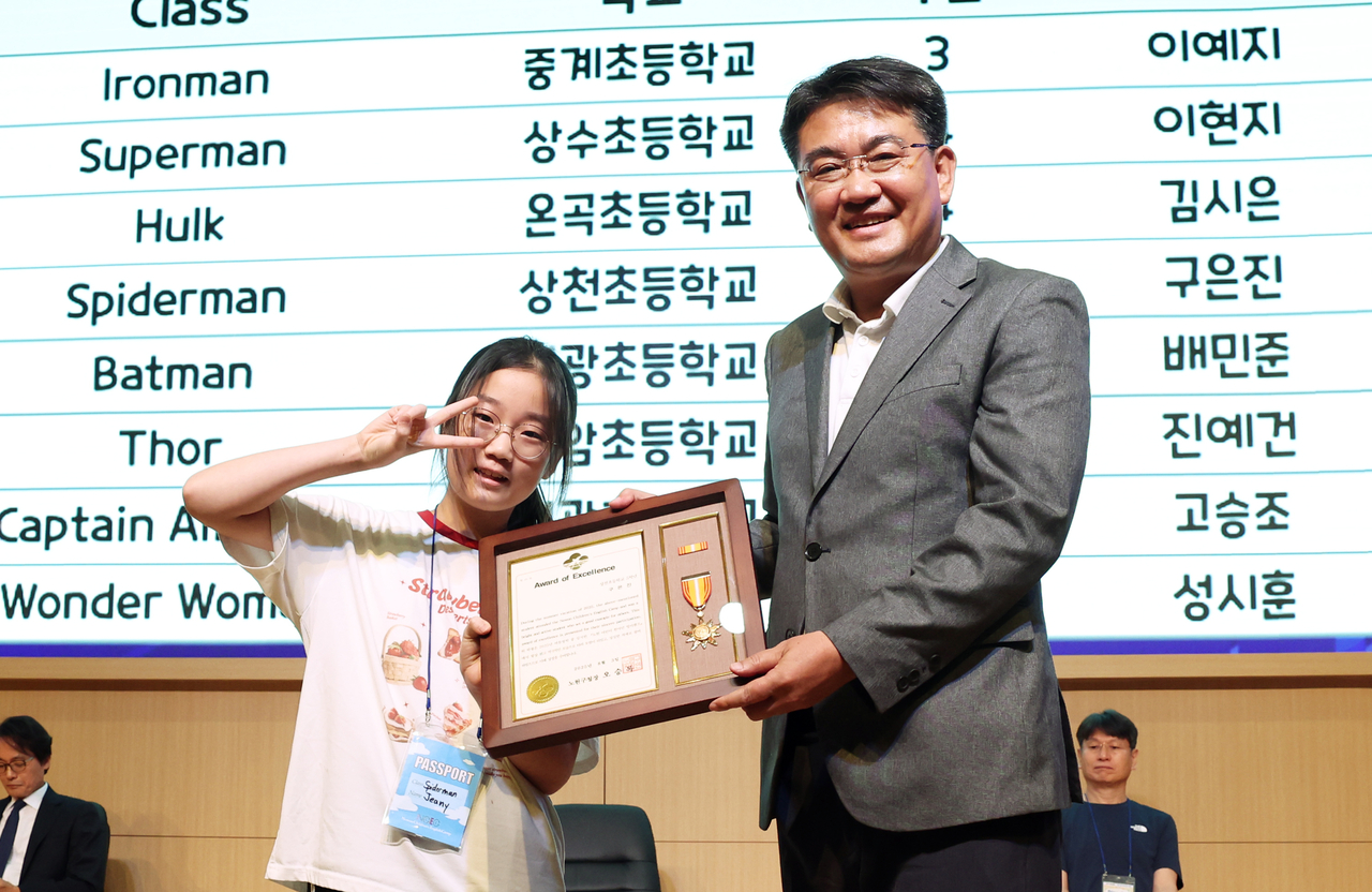 [헤럴드경제=박종일 선임기자]오승록 노원구청장은 8월 3일 오후 2시 공릉동 삼육대 요한관 대강당에서 열린 ‘2025 여름방학 노원 어린이 원어민 영어캠프(이하 영어캠프) 퇴소식’에 참석해 학생들의 수료를 축하했다.
