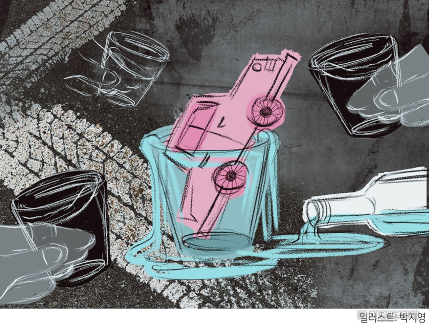 그는 사고 직후인 오후 7시58분부터 8시28분 사이 소주 600㎖(1.5병 이상)를 마셨다. 이른바 ‘술타기’를 한 셈이다. 현장에 출동한 경찰이 오후 9시5분쯤 A씨에 대한 채혈 측정 결과 혈중알코올농도는 0.313%로 나타났다.