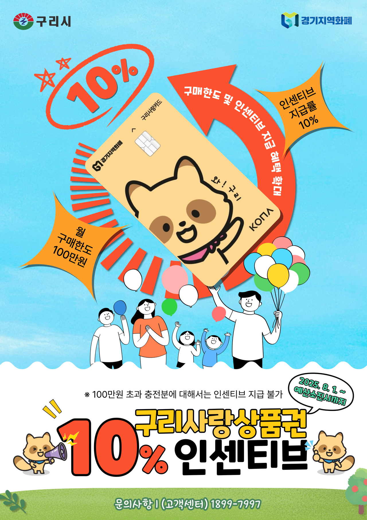 [헤럴드경제=박준환 기자]구리시(시장 백경현)가 8월부터 연말까지 구리사랑상품권 인센티브율을 기존 7%에서 10%로 상향하고, 월 구매 한도도 80만원에서 100만원으로 확대한다.