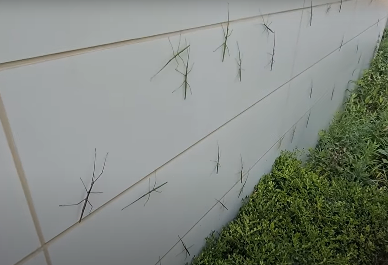 | 건물 외벽에 대벌레가 붙어 있다.[유튜브 채널 ‘쩔템’ 갈무리] |