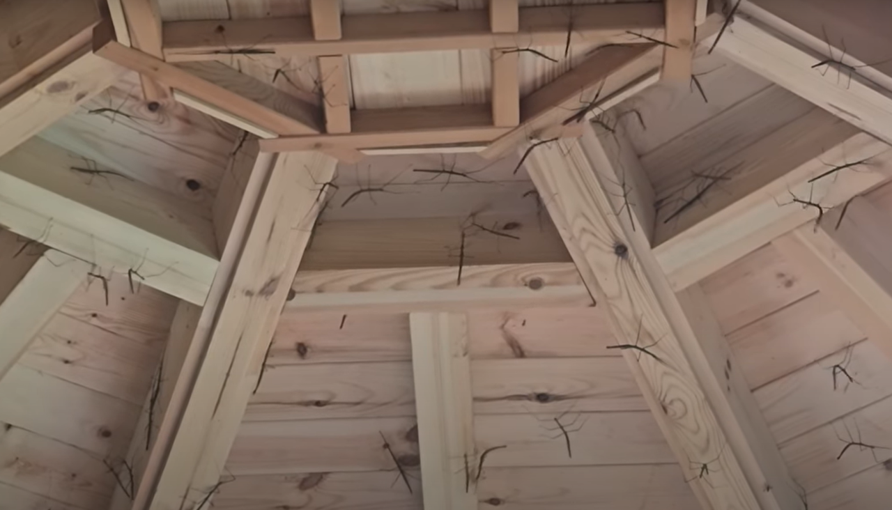 | 인천의 한 등산로 휴식 시설에 대벌레가 붙어 있다.[유튜브 채널 ‘쩔템’ 갈무리] |