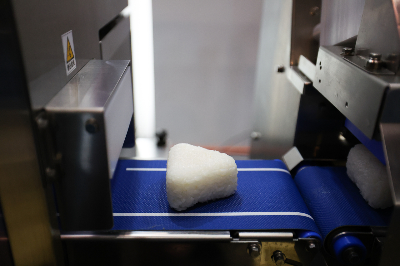 | 지난해 6월 일본 도쿄 빅사이트에서 열린 FOOMA 일본 2024(식품 가공 기술 엑스포) 기간 동안 스즈모 기계(주) 부스에서 로봇이 오니기리(주먹밥)를 만들고 있다. [게티이미지] |