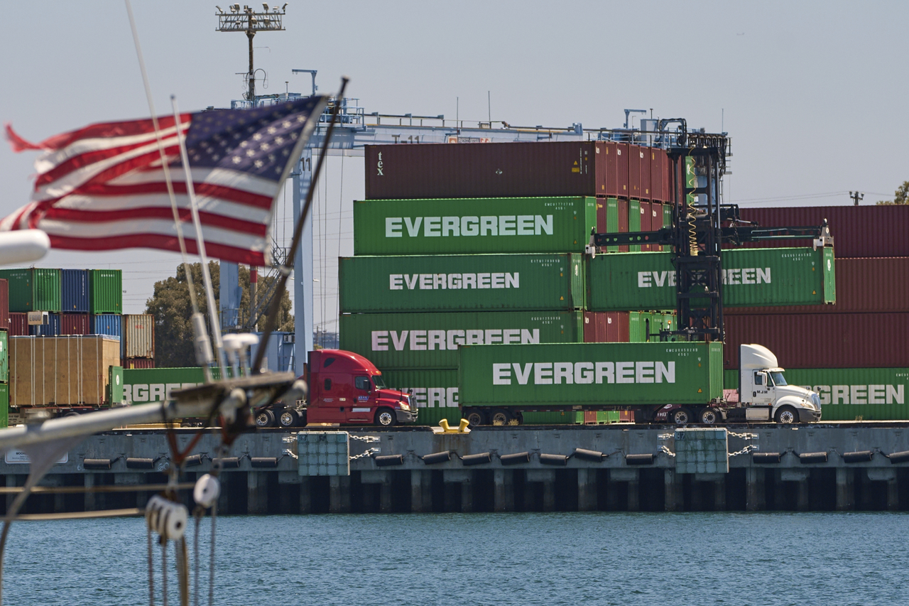 | 지난 1일 미국 로스앤젤레스 항구의 에버그린 터미널에 선적 컨테이너가 쌓여 있다. [AP] |
