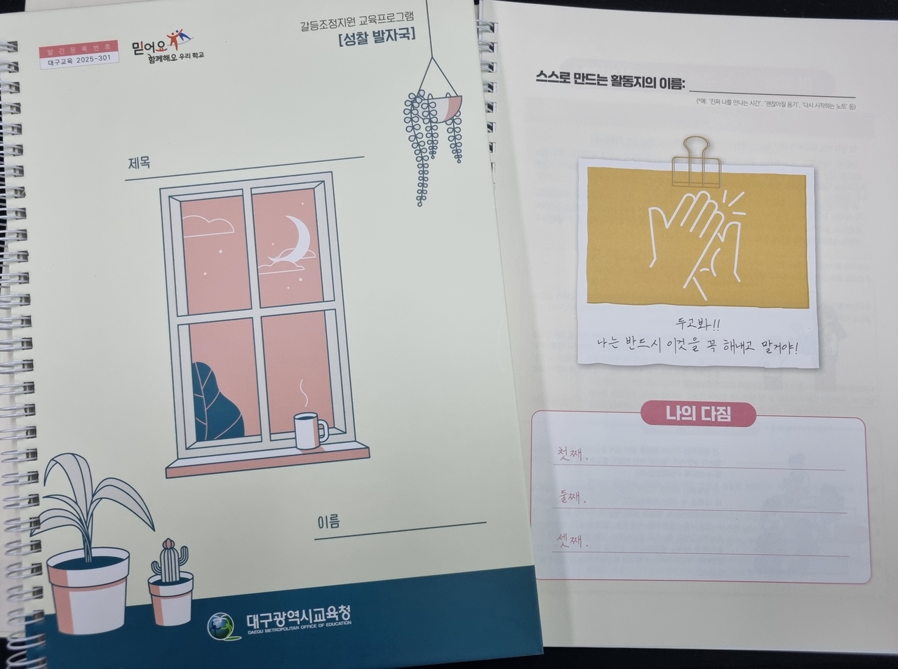 [헤럴드경제(대구)=김병진 기자]대구시교육청이 학교폭력 등 학생 간 갈등 사안을 교육적으로 해결하기 위해 개발한 워크북 ‘성찰 발자국’을 발간했다.