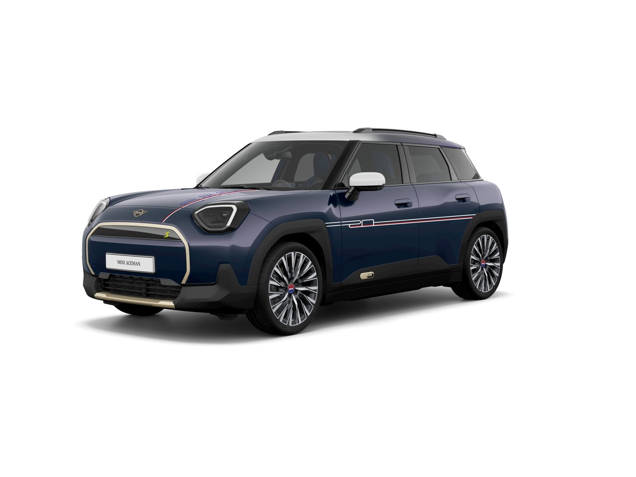 차체 외부에는 국내에서 판매되는 MINI 에이스맨으로서는 처음으로 인디고 선셋 블루 색상이 적용되며 하얀색에서 인디고 선셋 블루, 그리고 산 마리노 블루로 자연스럽게 이어지는 멀티톤 루프와 하얀색 사이드 미러캡이 어우러져 대담하면서도 감각적인 존재감을 드러낸다.