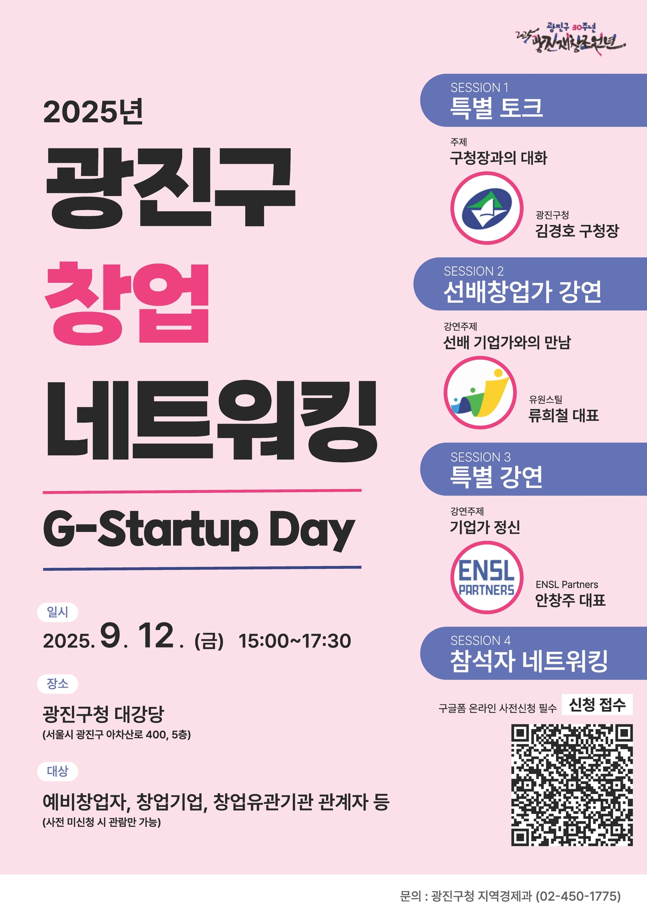 [헤럴드경제=박종일 선임기자]광진구(구청장 김경호)는 오는 9월 12일 지역 창업기업을 위한 네트워킹 행사 ‘G-Startup Day’를 개최, 행사에 참여할 기업을 모집한다.