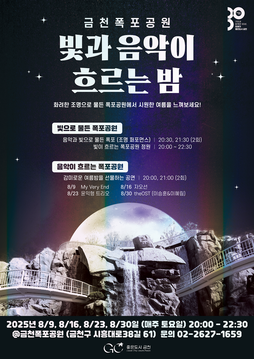 유성훈 금천구청장은 “이번 야간 프로그램으로 주민과 방문객이 함께 어우러질 수 있는 문화공간으로서 폭포공원의 가치를 발견하게 될 것”이라며 “많은 분들이 방문해 여름밤의 정취와 감성을 나누시길 바란다”고 전했다.