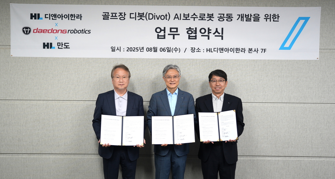 HL D&I한라는 지난 6일 본사 대회의실에서 HL만도·대동로보틱스와 디봇 보수로봇 개발 추진을 위한 양해각서(MOU)를 체결했다. HL만도는 자율주행 제어·센서 기술을 보유했고 대동로보틱스는 인공지능(AI) 로봇 전문기업이다.