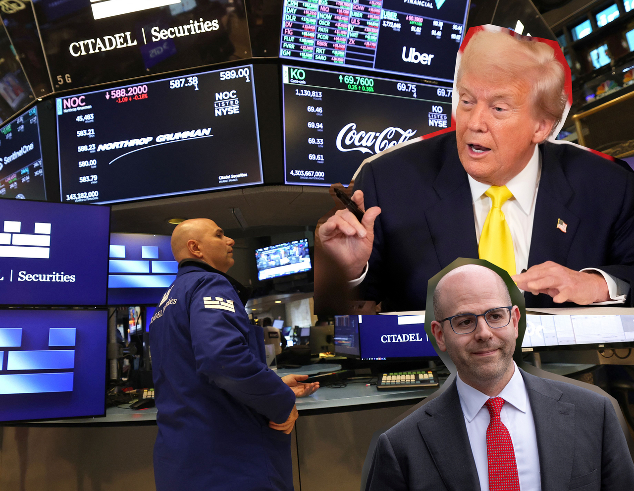 | 도널드 트럼프(오른쪽 상단) 미국 대통령이 7일(현지시간) 스티브 미런(오른쪽 하단) 백악관 경제자문위원회(CEA) 위원장을 연방준비제도(Fed·연준) 이사로 지명했다. 이날 뉴욕증권거래소(NYSE)의 모습. [로이터, AP, AFP] |