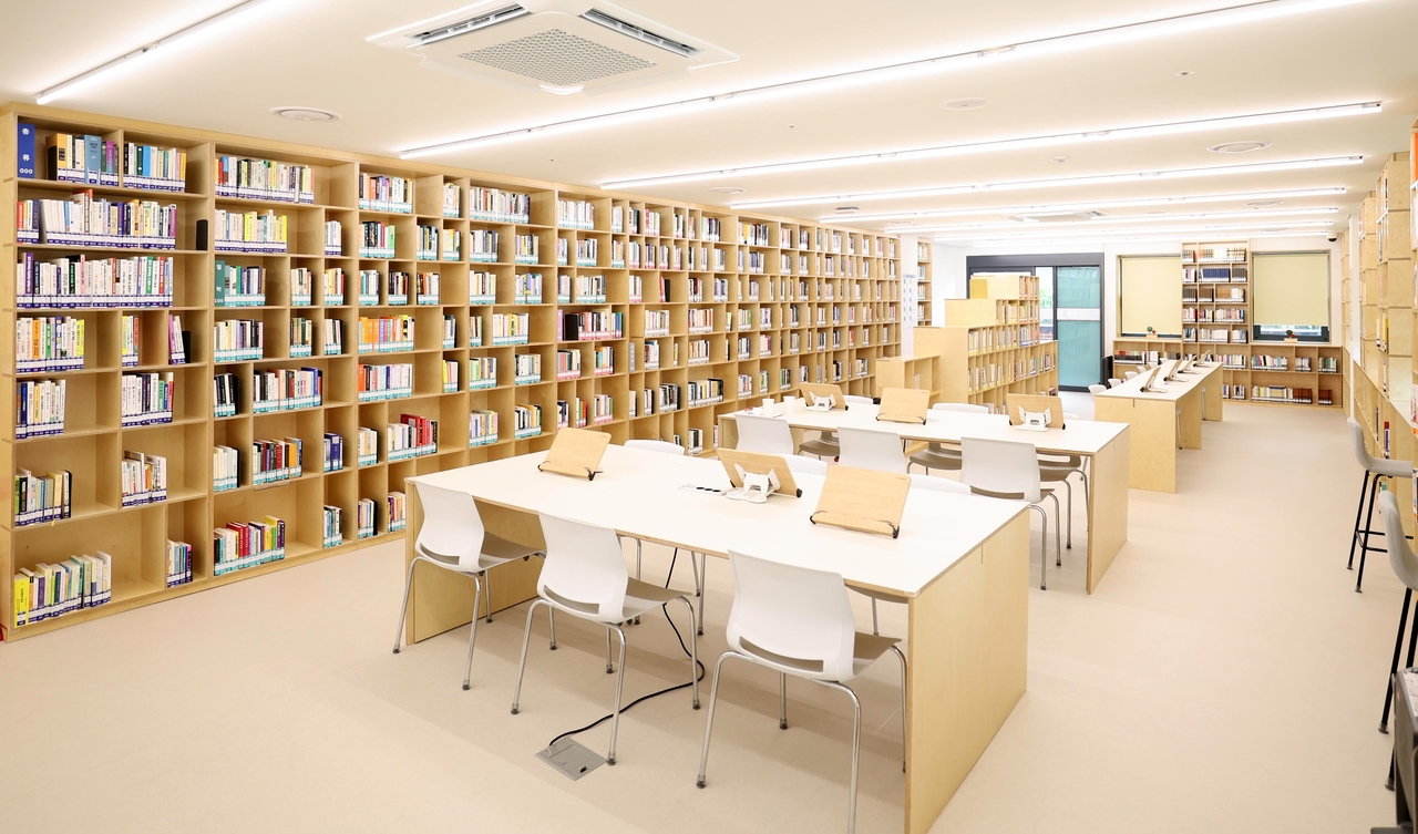 도서관 2층은 안내데스크와 어린이열람실, 임산부휴게실, 3층은 종합열람실과 프로그램실 등으로 꾸며졌다.