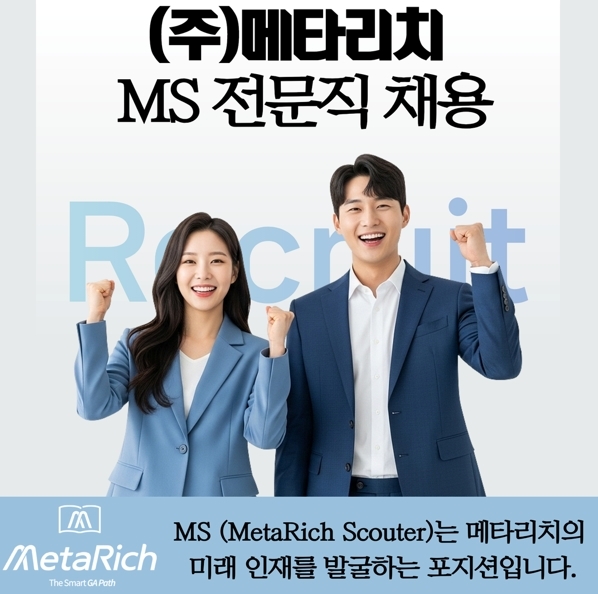 | 국내 대형 보험대리점(GA) 메타리치의 MS(메타리치 스카우터)전문직 공개채용 관련 이미지. |