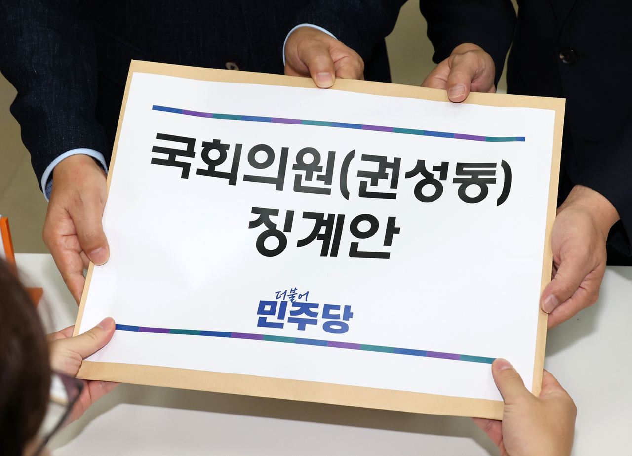 박상혁 민주당 원내소통수석부대표와 김현정 원내대변인은 이날 오전 서울 여의도 국회 의안과를 찾아 권 의원 징계안을 제출했다.