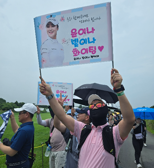그는 “미국에서 성적이 기대만큼 안나온다고들 하는데 우리는 그런 것엔 크게 개의치 않는다. 윤 프로의 시원한 장타와 경기 운영 능력, 캐디와 갤러리를 대하는 태도 등에 매력을 느껴 열심히 응원한다”고 했다.