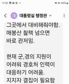 | 신혜식씨 측이 공개한 尹대통령실 행정관 문자 |