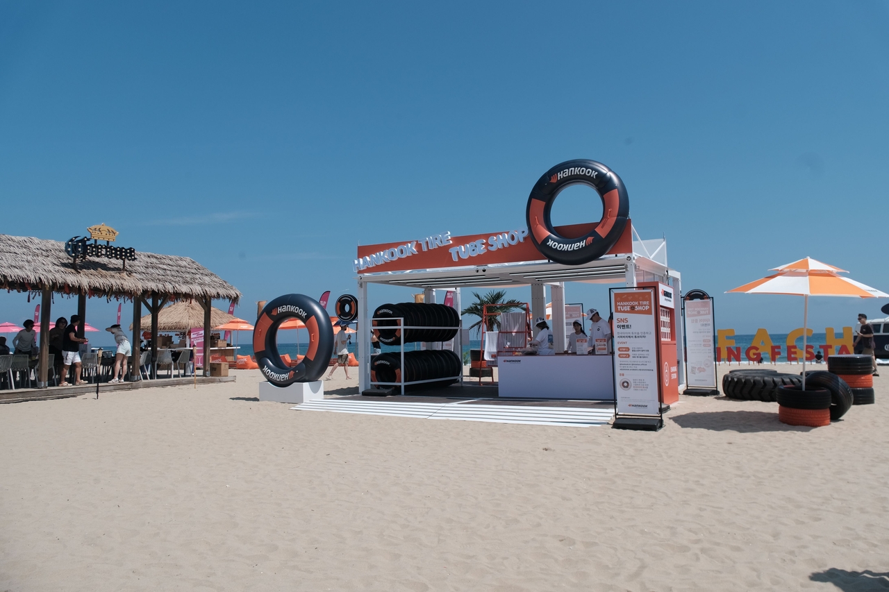 ‘한국타이어 튜브숍’은 타이어 모양의 튜브를 빌려주는 대여소 콘셉트로, ‘한국타이어 튜브 렌탈숍’, ‘포토존’, ‘이벤트존’ 등 복합 체험 공간을 마련했다. 방문객은 튜브 대여, 이벤트 참여, 사진 촬영 등 여가 활동을 통해 브랜드를 경험했다.