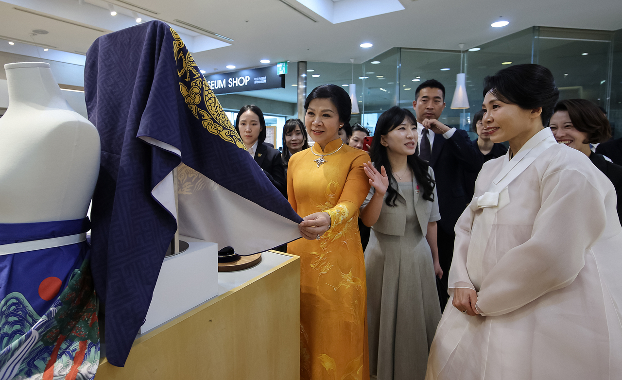 김 여사는 이날 흰색 한복 차림으로 리 여사를 맞았다. 리 여사 또한 베트남 전통 의복인 아이자오를 착용했다. 이날 행사는 국립중앙박물관은 일반 관람객도 받고 있어 두 여사는 시민들과 인사를 나누며 관람을 즐겼다.