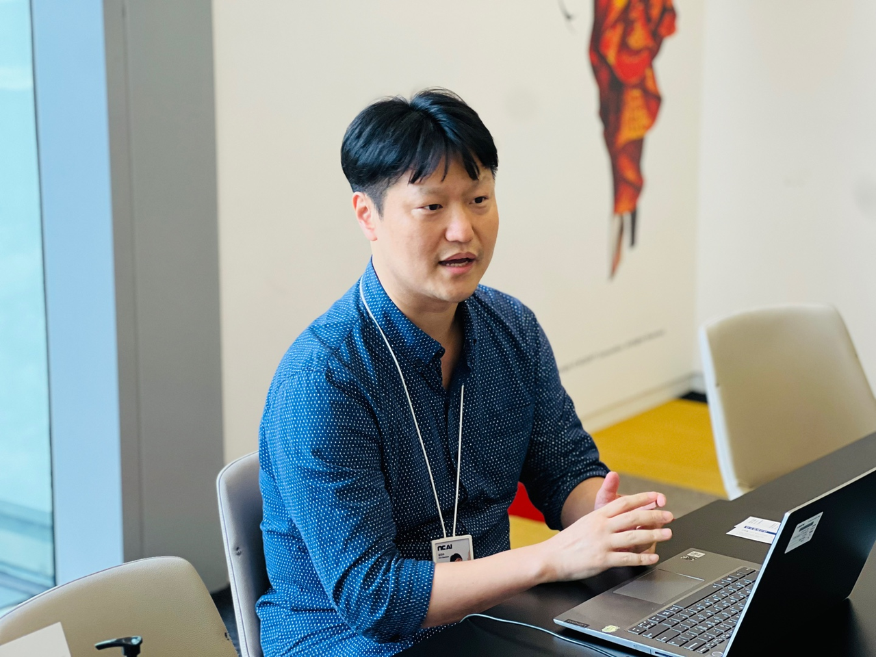| 지난 8일 경기 성남시 판교 엔씨소프트 사옥에서 김건수 NC AI 에이전틱AI 랩 실장이 헤럴드경제와 인터뷰를 진행하고 있다. [NC AI 제공] |