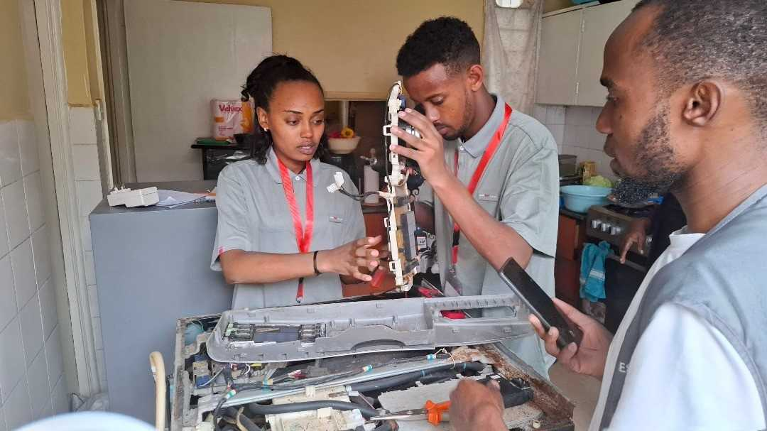 | 에티오피아 LG-KOICA 희망직업훈련학교 학생들이 가전제품에 대한 교육을 받고 있다. [LG전자 제공] |