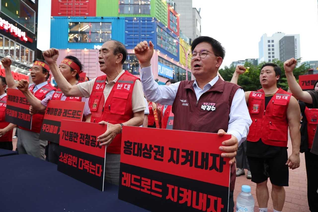 박강수 마포구청장 대장 홍대선 레드로드 역사 변경 요구 시위