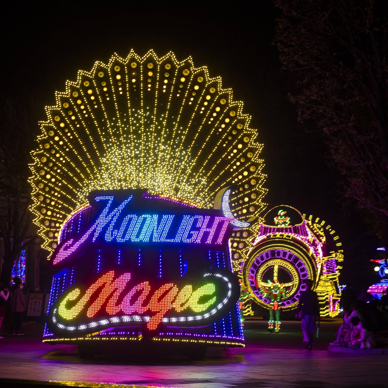 ‘문라이트 퍼레이드’는 수십 명의 댄서, 연기자들이 반짝반짝 빛나는 퍼레이드카들과 함께 행진하며 일대 장관을 연출한다.