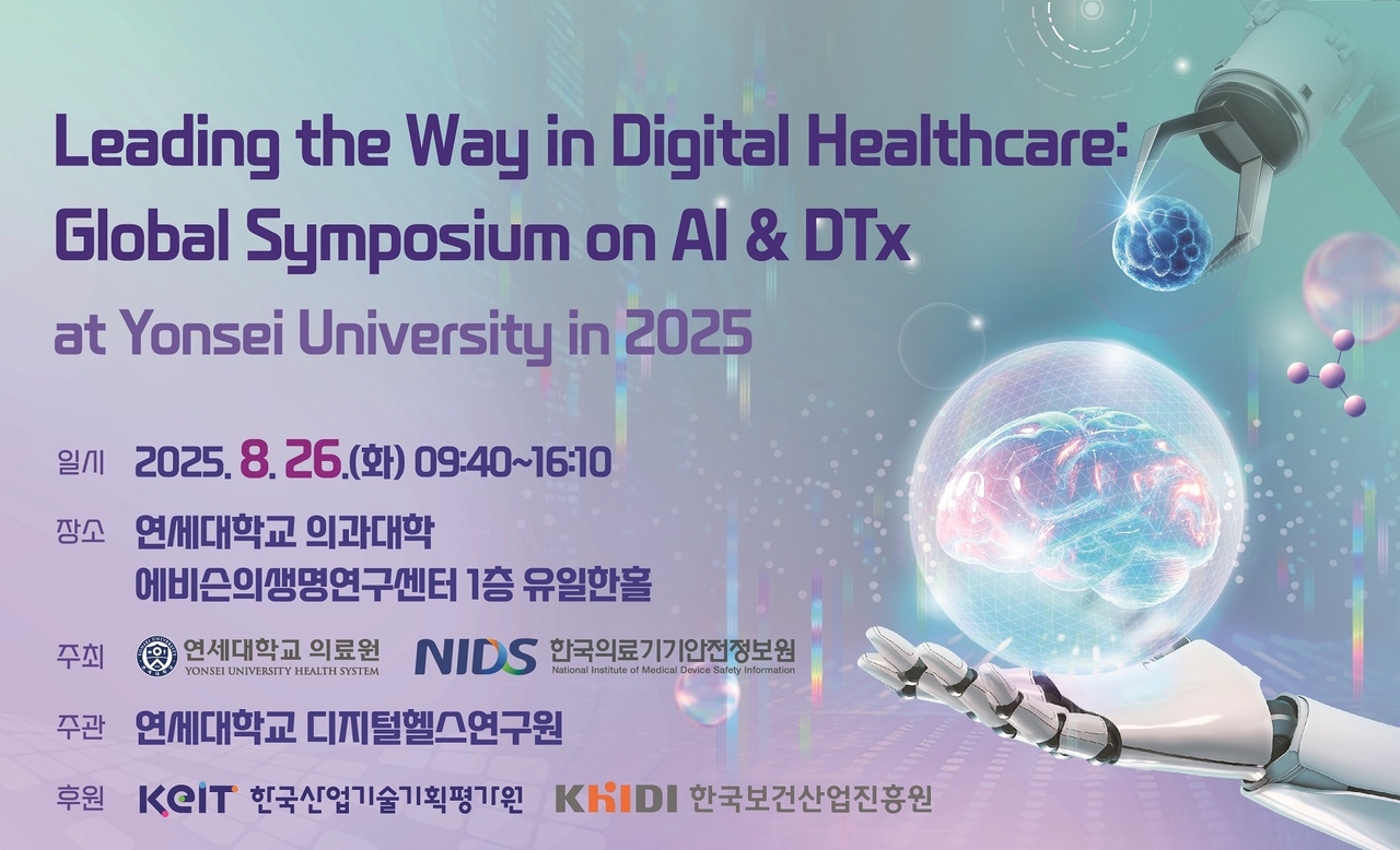 [헤럴드경제 = 김상수 기자] 연세대학교 의료원과 한국의료기기안전정보원이 오는 26일 연세대학교 의과대학 에비슨생명연구센터에서 ‘2025 글로벌 디지털 헬스케어 심포지엄’을 공동 개최한다고 13일 밝혔다.