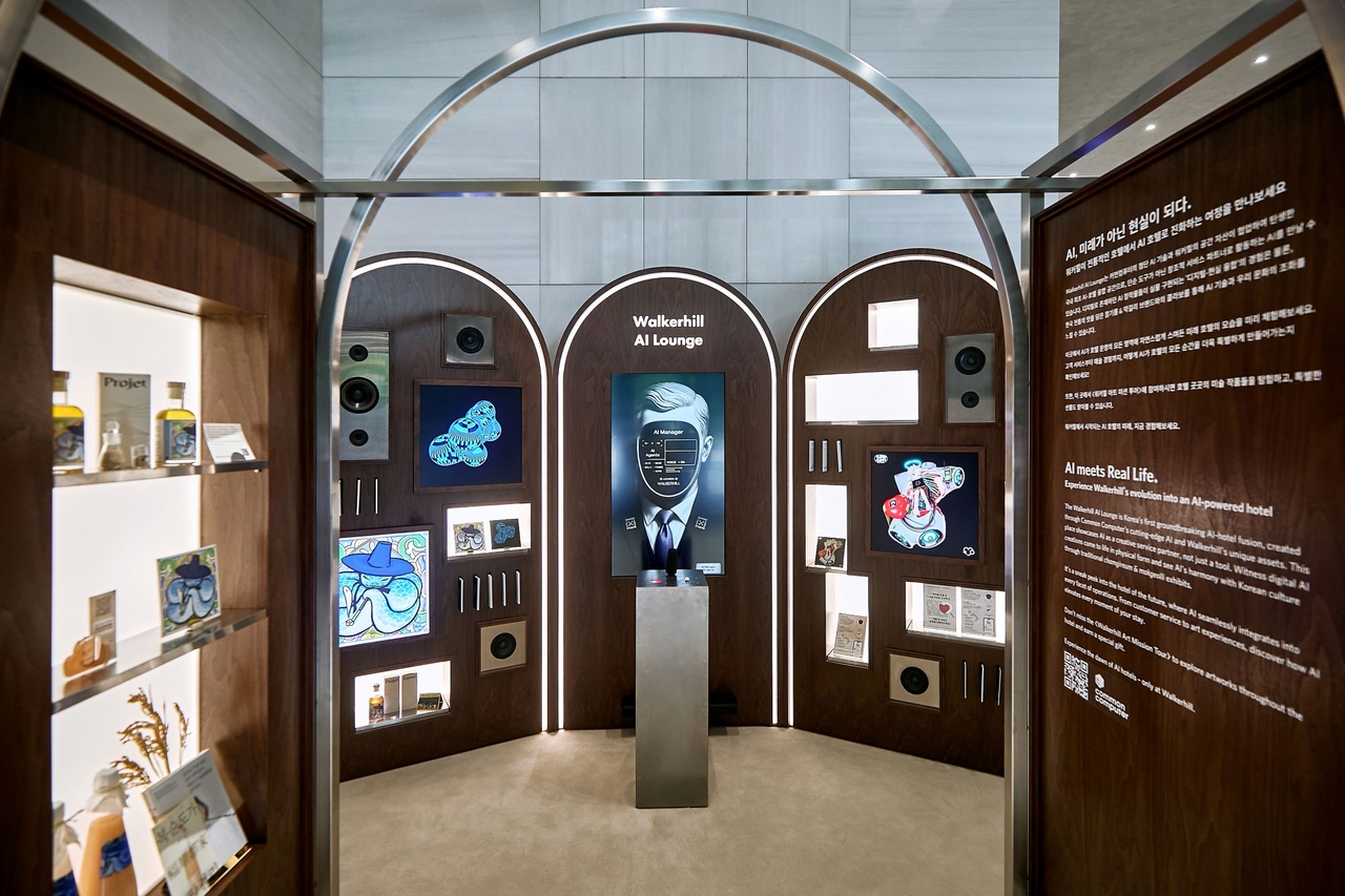 13일 워커힐에 따르면, 광장동 워커힐 서울 1층에 자리한 워커힐 AI 라운지는 첨단 AI 기술 전문기업 커먼컴퓨터의 기술력과 워커힐의 공간 자산, AI 혁신에 대한 워커힐의 의지가 결합해 탄생한 국내 최초 AI호텔 융합 체험 공간이다.