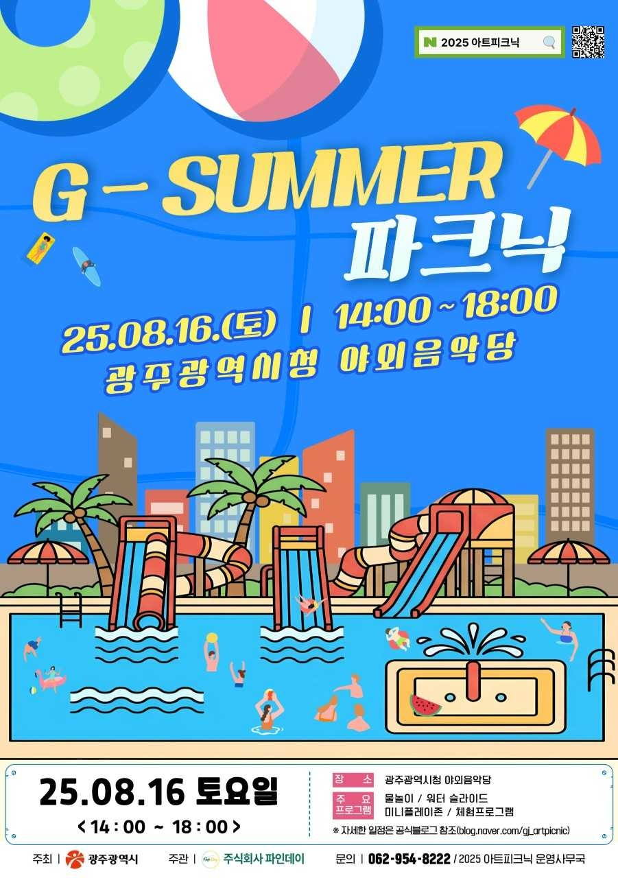 광주시가 연중 12차례 운영하는 아트피크닉 중 여름행사인 ‘지-서머 파크닉’은 공연(솜사탕쇼, 기구거품쇼), 오락, 물놀이(물 미끄럼틀, 대형 풀장, 그늘막 수영장), 체험프로그램(여름 볕가림모자 꾸미기, 대나무 물총 꾸미기, 비치볼 꾸미기 등 10종) 등 다채로운 프로그램으로 구성됐다.