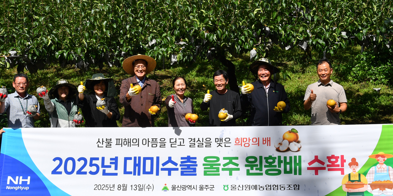 이순걸 울주군수는 “이번에 첫 수확된 울주배는 산불 피해의 아픔을 딛고 결실을 맺은 희망의 배”라고 강조하고, “이상기후로 인한 폭우와 폭염 등 여러 어려운 여건 속에서도 고품질의 배를 생산해주신 모든 농업인들께 감사드린다”며 배 재배 농가를 격려했다.