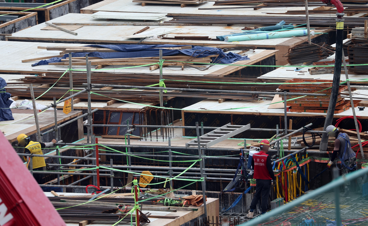 | 서울 시내 한 아파트 건설 현장에서 작업자들이 작업을 하고 있다. [연합] |