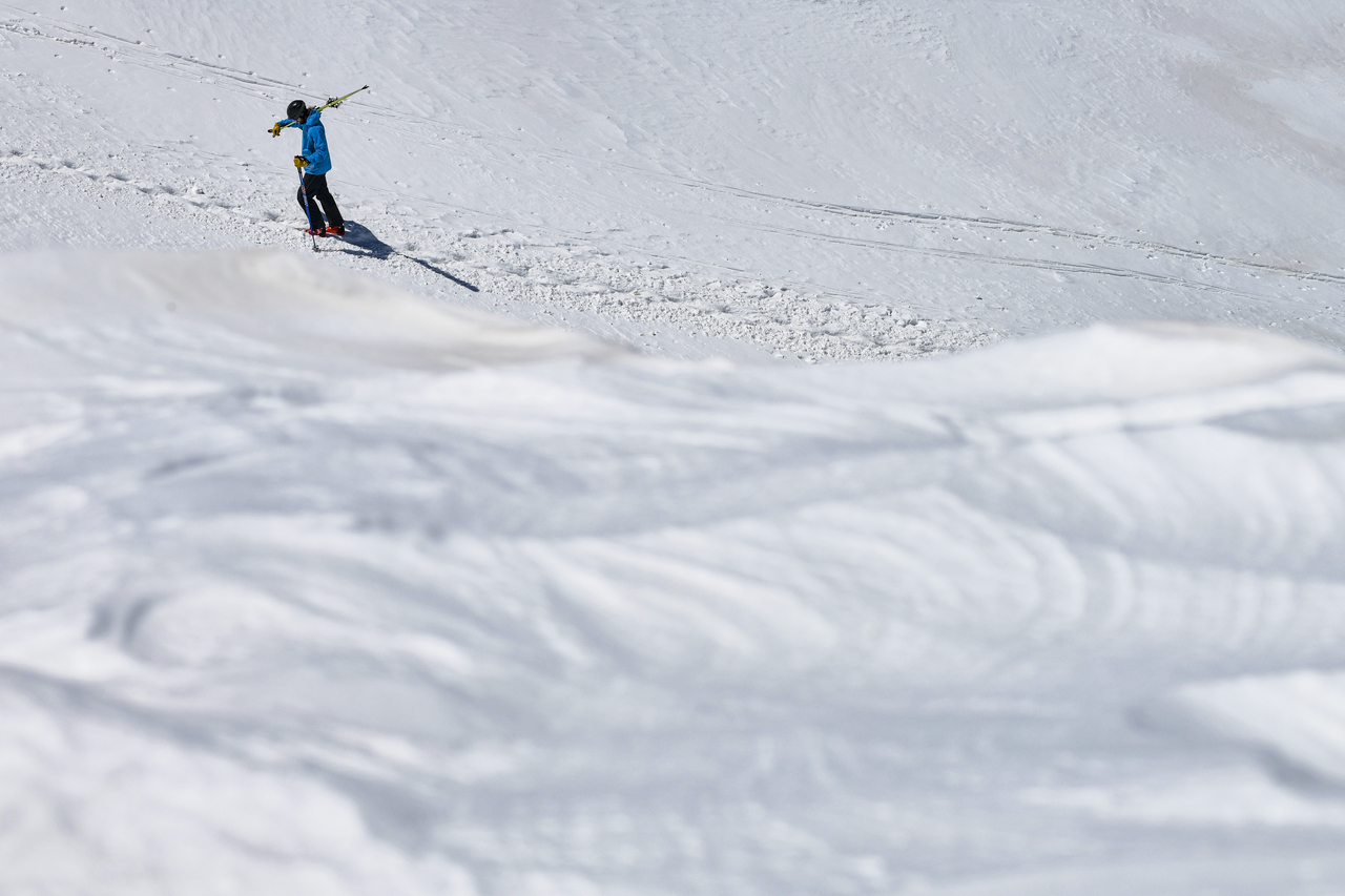 | 지난 2019년 5월 콜로라도주 딜런의 아라파호 베이슨 스키장에서 한 스키어가 북극까지 트레킹을 완주하는 모습. [게티이미지] |