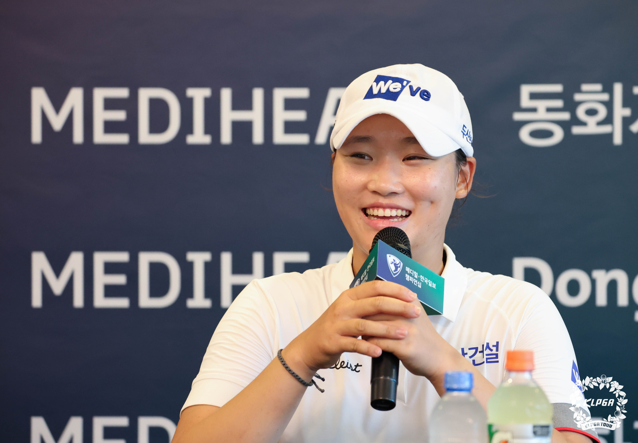 | 대회 첫날 공동 선두에 오른 후 인터뷰중인 김민솔. [사진=KLPGA] |