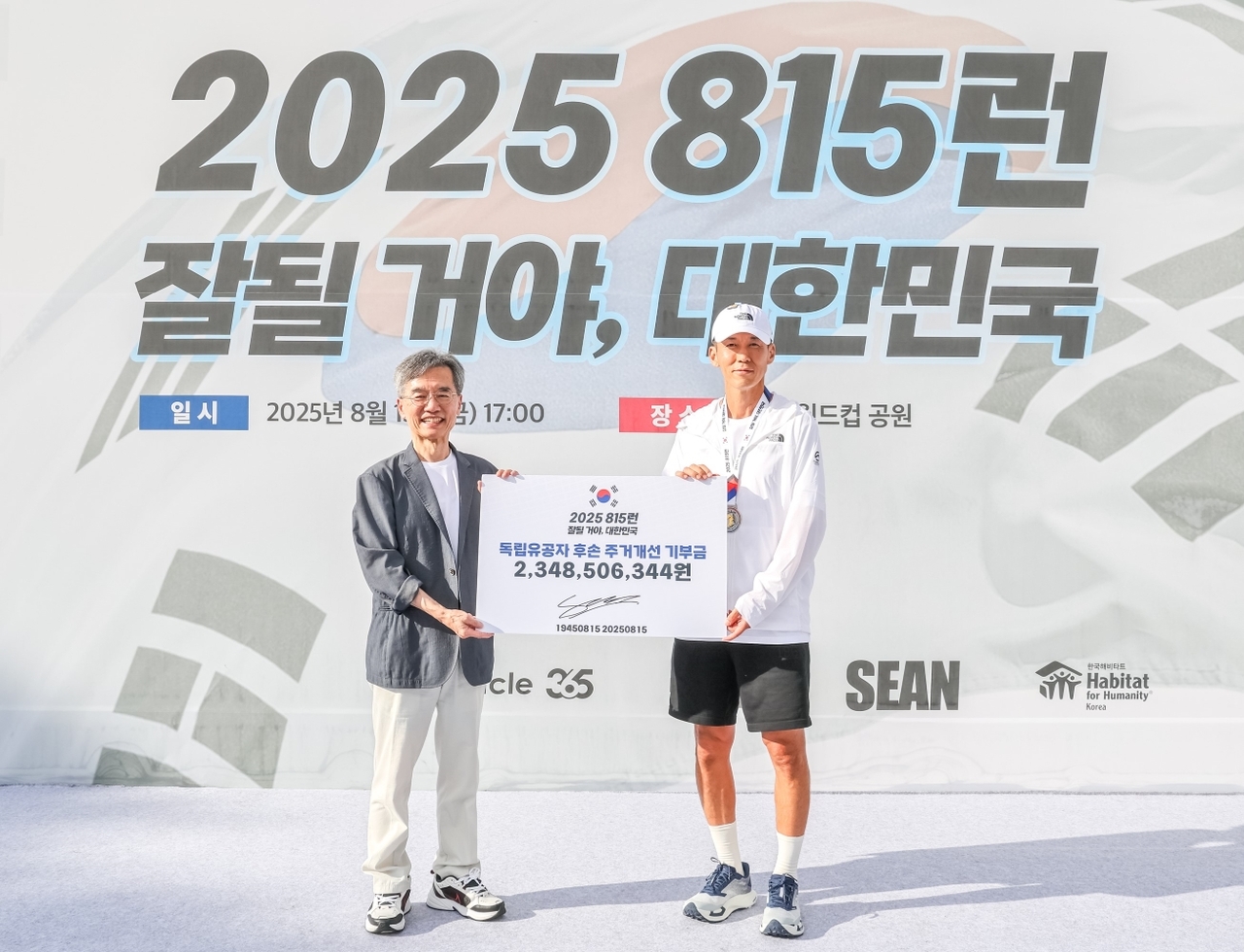 [헤럴드경제=함영훈 기자] 국제 주거복지 비영리단체 한국해비타트와 가수 션이 광복 80주년을 맞아 개최한 기부 마라톤 캠페인 ‘2025 815런’이 성황리에 마무리되면서 3대째 가난하게 살아왔던 독립유공자 후손 19가구가 새 집을 얻게 됐다.