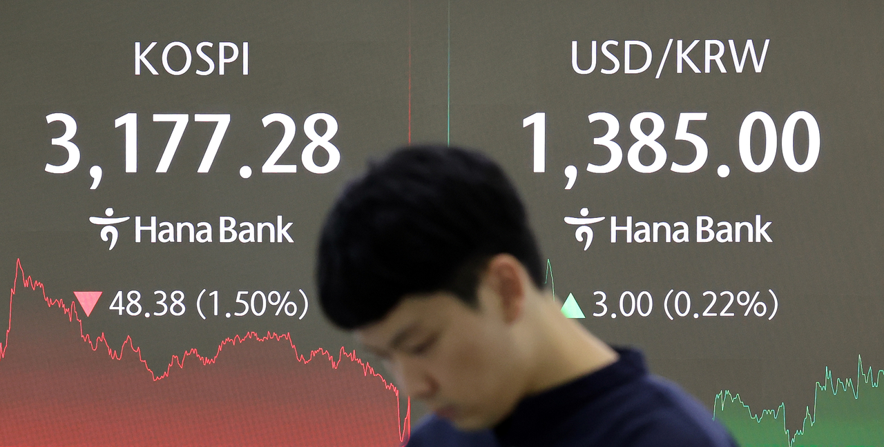 [헤럴드경제=신동윤 기자] 코스피 지수가 3200 고지에서 내려온 뒤 3170선까지 빠르게 물러섰다. 도널드 트럼프 미국 대통령발(發) 관세 부담에 인플레이션(물가 상승) 압력까지 더해지면서 발목을 잡은 탓이다.