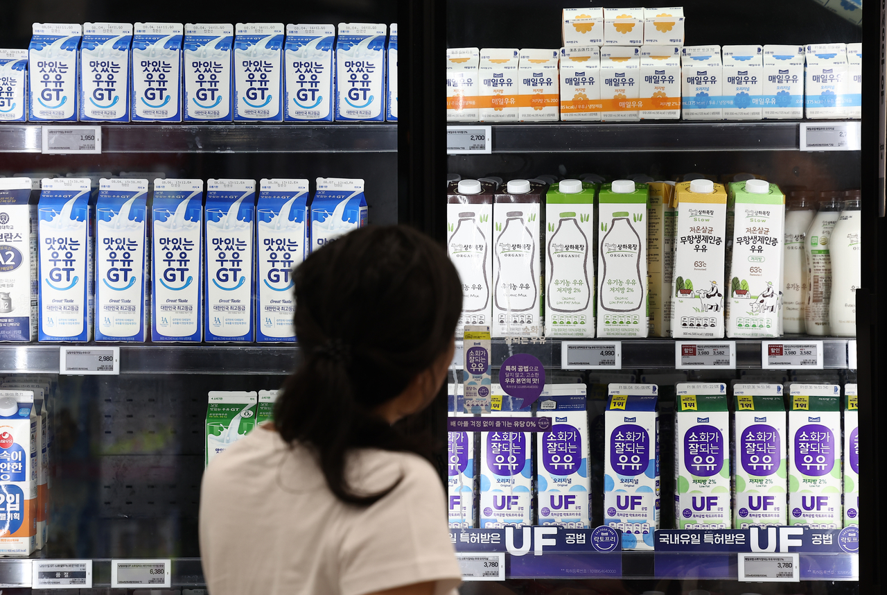 | 서울 한 대형마트에 우유가 진열돼 있다. [연합] |