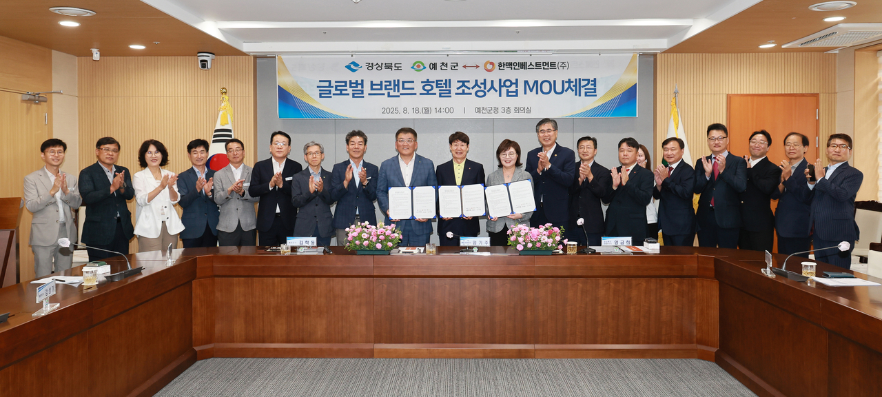 [헤럴드경제(예천)=김병진 기자]경북도와 예천군, 한맥인베스트먼트는 18일 예천군청에서 ‘글로벌 브랜드 호텔 조성사업’ 추진을 위한 투자 투자양해각서(MOU)를 체결했다.