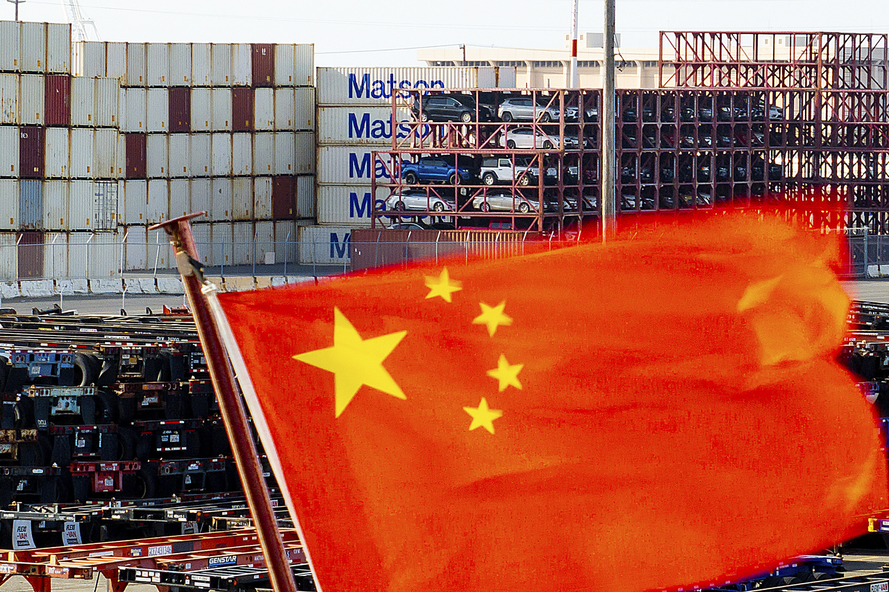 | 미 캘리포니아주 오클랜드항 컨테이너 선박에 게양된 중국 국기가 펄럭이고 있다. [AP] |
