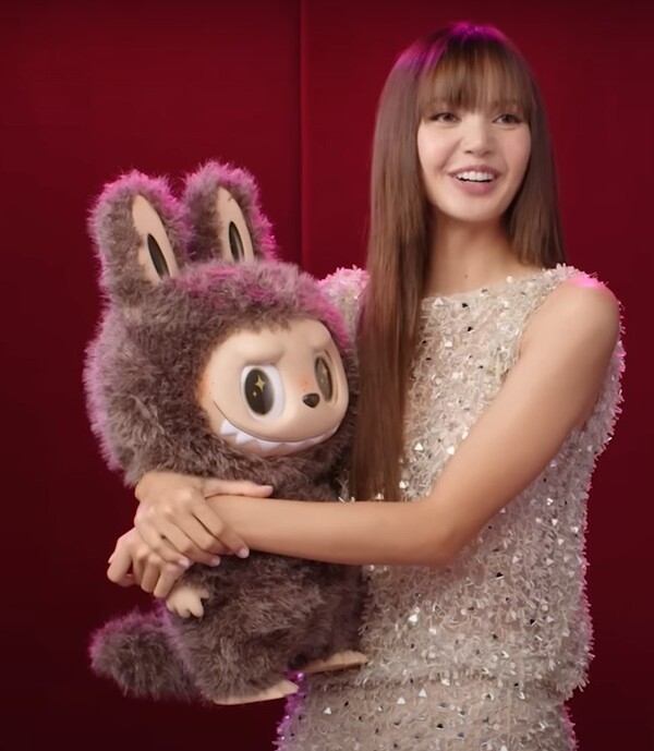 | 라부부 인형 안고 있는 리사. [보그 타이완 유튜브 갈무리] |