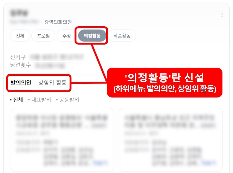| 네이버 인물정보 서비스 의정활동 영역 신설 예시도 [경남도의회 제공] |