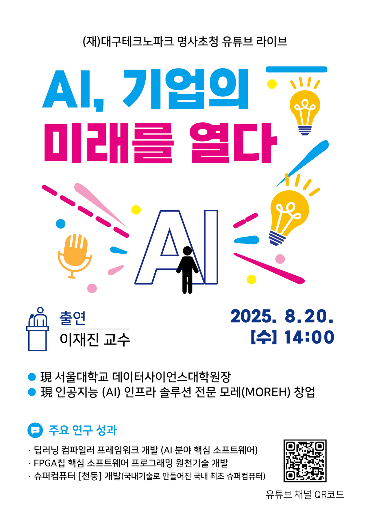 김한식 대구TP 원장은 “이번 라이브는 ‘AI를 어디서부터 시작해야 하는가’에 대한 실질적인 해답을 드릴 것”이라며 “기업 현장에서 곧바로 적용할 수 있는 구체적인 로드맵을 제시하겠다”고 말했다.