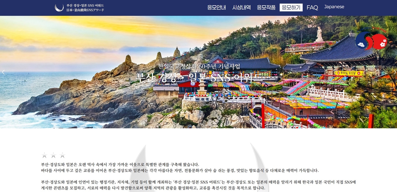 | ‘부산, 경상·일본 SNS 어워드’ 공식 홈페이지 화면. [홈페이지 캡처] |