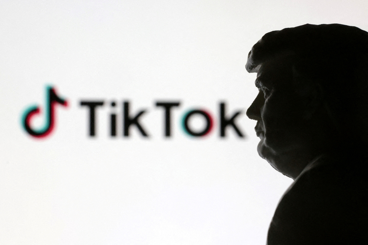 | 지난 1월 15일(현장사진) 촬영된 일러스트에서, 미국 대통령 당선인 도널드 트럼프의 3D 프린트된 미니어처 모형과 틱톡(TikTok) 로고가 보인다. [로이터] |