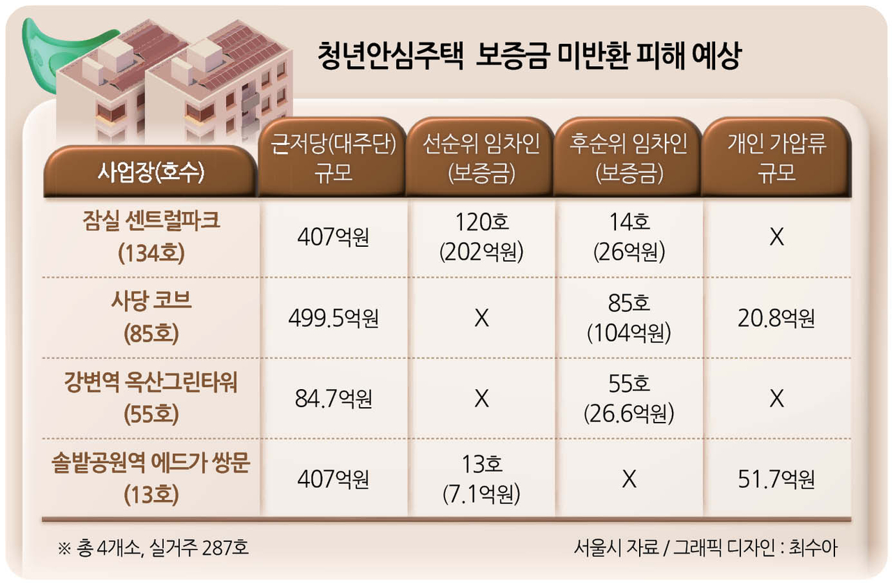 서울시가 청년안심주택 피해 임차인 보호 대책을 내놨지만, 입주민들의 불안은 좀처럼 가라앉지 않고 있다. 서울시는 ‘청년안심주택 피해 임차인 보호 대책’을 발표하고, 주택진흥기금과 특별법을 활용한 지원 방안을 마련했다고 지난 20일 밝혔다. 서울시가 밝힌 피해 규모는 잠실·사당·구의·쌍문 등 4개소, 287호에 달한다.