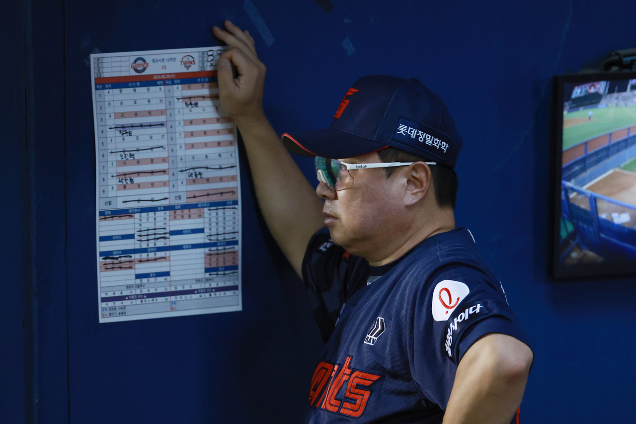 | 20일 LG 트윈스전을 지켜보고 있는 롯데 김태형 감독 [연합] |