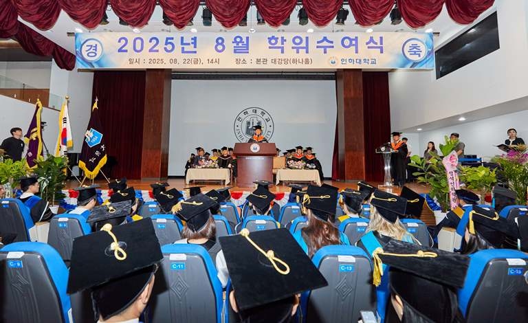| 22일 열린 인하대학교 2025년 8월 학위수여식 장면.[인하대 제공] |