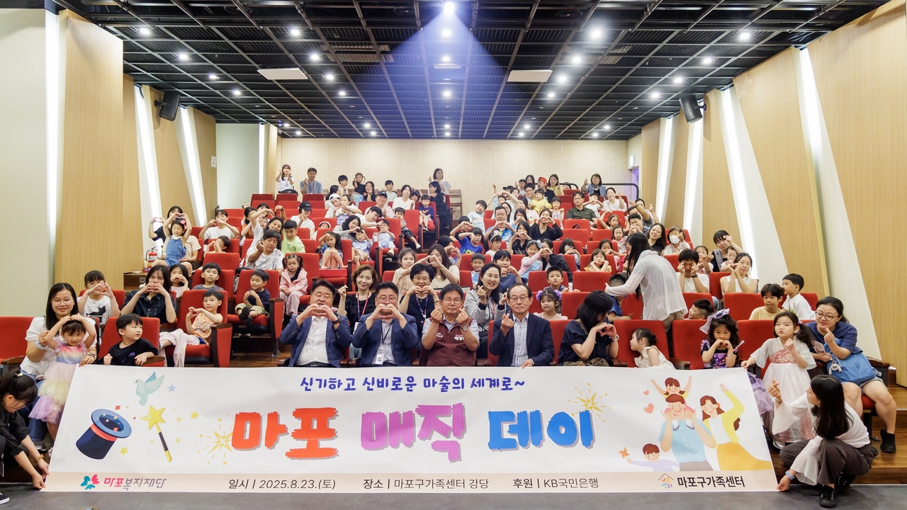 행사는 마포청소년문화의집 청소년 댄스팀의 사전 공연을 시작으로 내빈 소개, 구청장과 함께하는 마술 체험, 단체 기념촬영에 이어 본격적인 마술 공연이 진행됐다. 특히 영유아부터 초등학생까지 부모와 함께 참여해 행사장은 한층 활기찬 분위기로 가득했다.