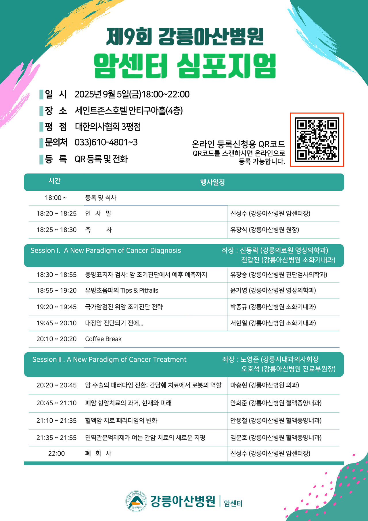 한편, 강릉아산병원 암센터는 지역거점 암 치료 기관으로서 지역 의료인의 전문 역량 강화와 긴밀한 진료 협력 체계 구축을 위해 매년 심포지엄을 이어오고 있다.