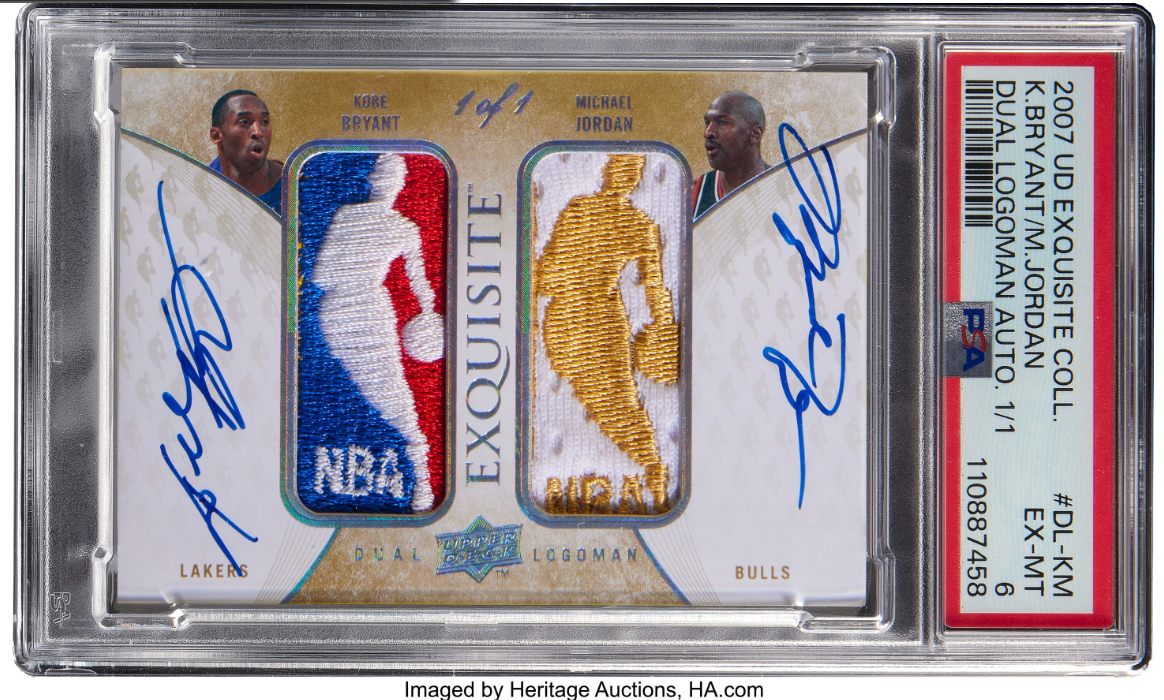 영국 BBC 방송에 따르면 헤리티지 옥션이 진행한 경매에 출품된 ‘2007-08 어퍼덱 익스퀴짓 시리즈 조던&브라이언트 듀얼 로고맨 사인 카드’가 1290만 달러(약 179억 원)에 낙찰됐다.