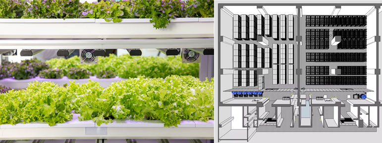 - 지식산업센터, 물류센터, 산업단지 등 다양한 공간에 스마트팜 수직농장 개발