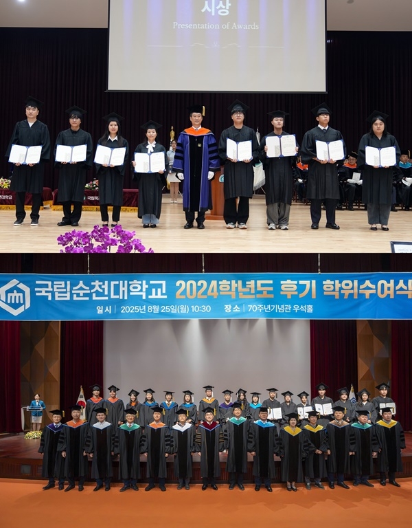 [헤럴드경제=박대성 기자] 국립순천대학교(총장 이병운)는 25일 학내 70주년기념관 우석홀에서 ‘2024학년도 후기 학위수여식’을 개최했다.